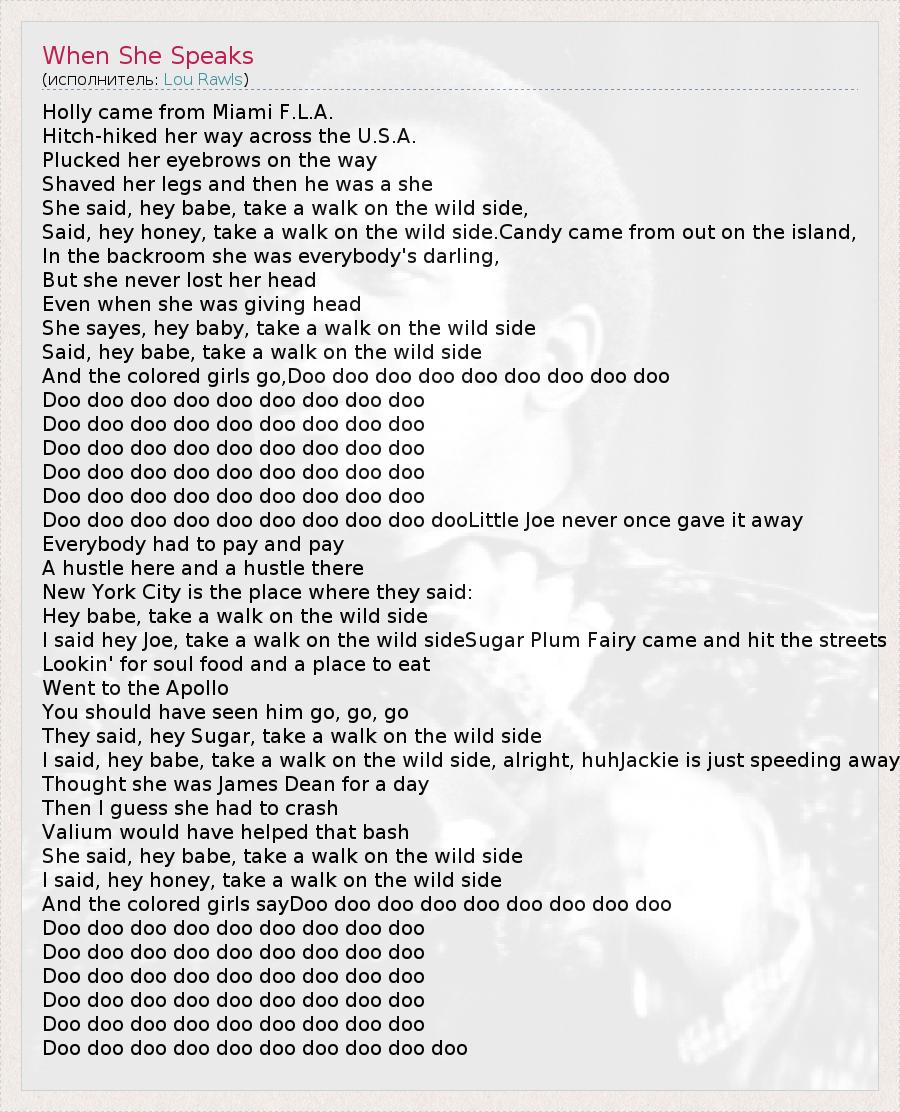 Said, hey honey, take a walk on the wild side.Candy came from out on the island,