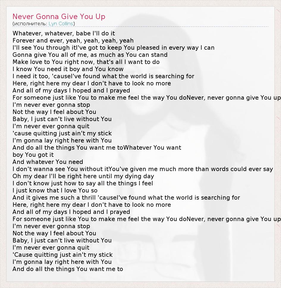 ГлавнаяИсполнителиLyn CollinsNever Gonna Give You Up