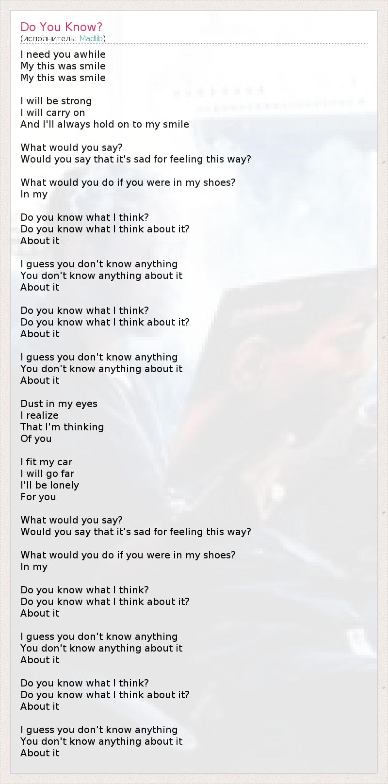 А как ты думаешь, о чем песня "Do You Know?" ?