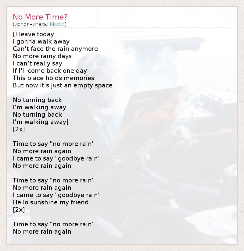 А как ты думаешь, о чем песня "No More Time?" ?