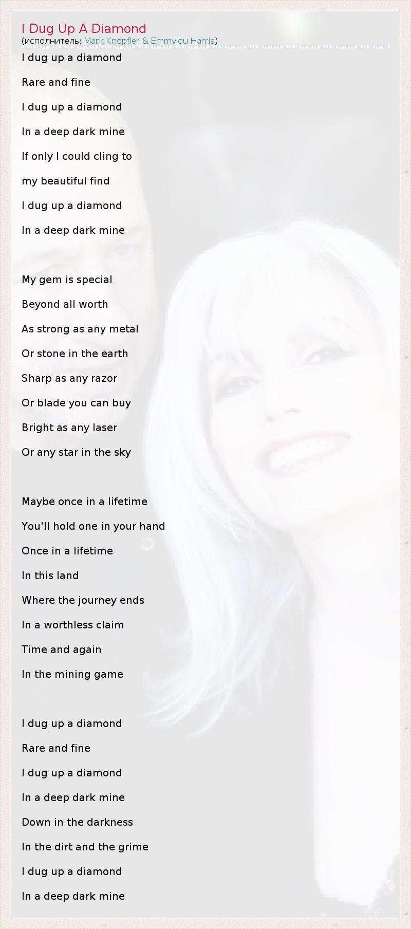 А как ты думаешь, о чем песня "I Dug Up A Diamond" ?