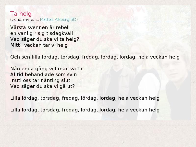 Och sen lilla lördag, torsdag, fredag, lördag, lördag, hela veckan helg