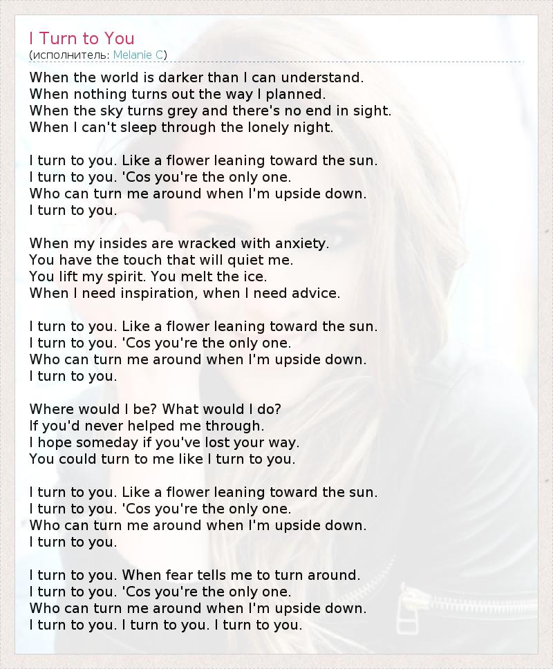 А как ты думаешь, о чем песня "I Turn to You" ?