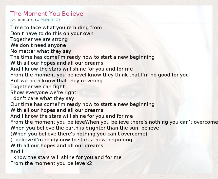 ГлавнаяИсполнителиMelanie CThe Moment You Believe