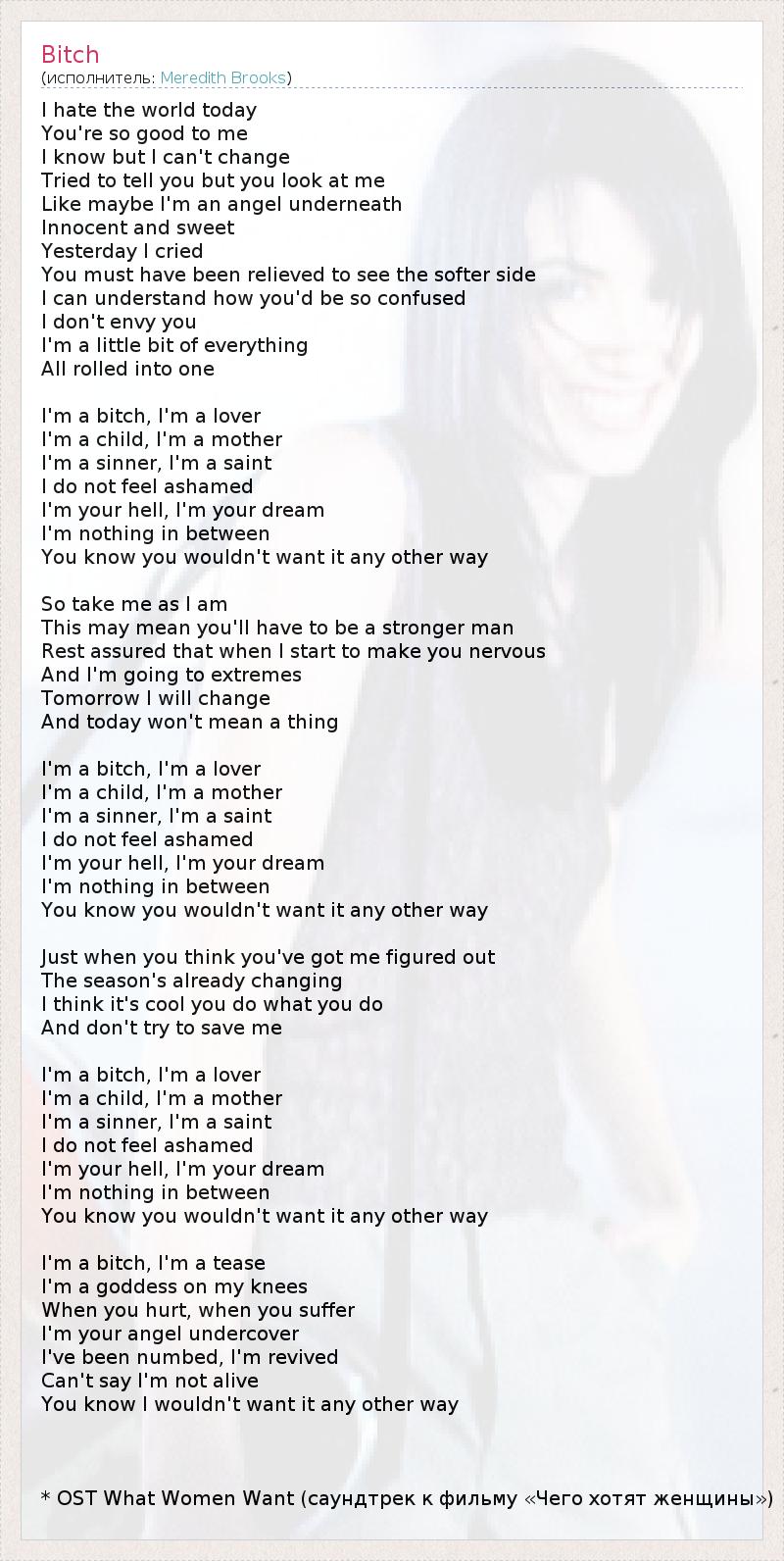Это интересно:Мередит Брукс родилась в 1958 году в Орегон Сити, штат Орегон, США. После развода родителей вместе с матерью, братом и сестрой они переехали в Корвалис, штат Орегон. В одиннадцатилетнем возрасте Брукс увлеклась игрой на гитаре. Проявив успехи в учебе и сдав несколько классов экстерном она в 15 лет становится выпускницей Corvallis High School. В начале 1980х Брукс выступает в клубах Willamette Valley, Oregon и Washington,... продолжение