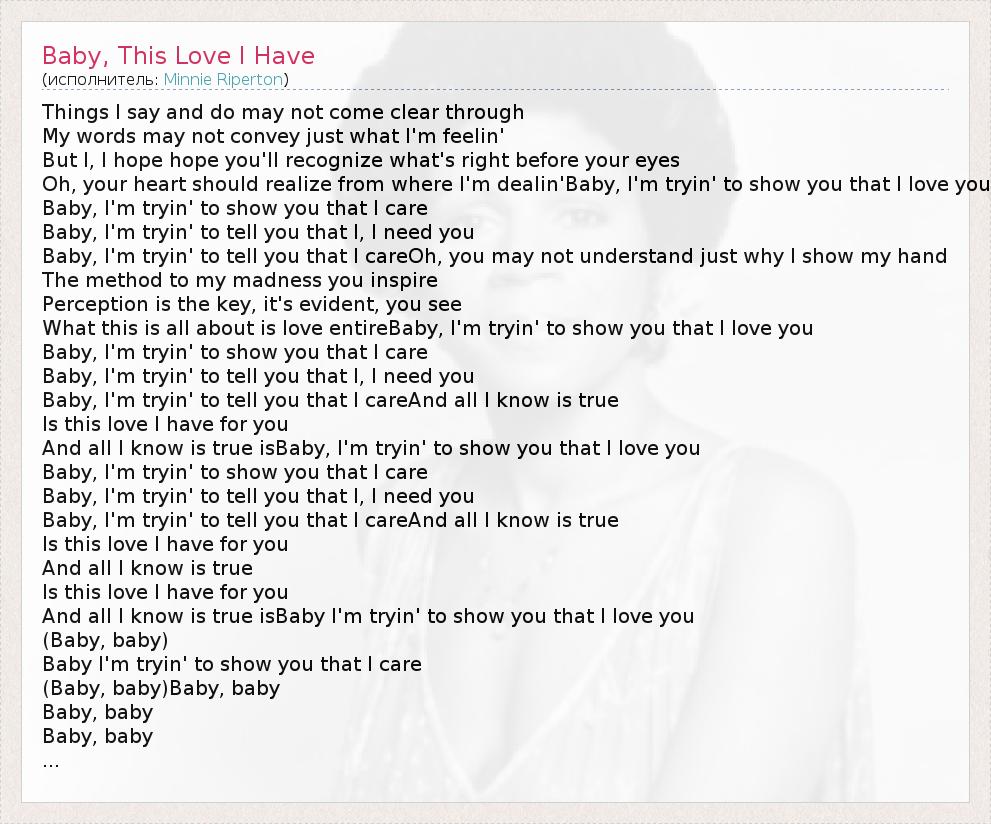 А как ты думаешь, о чем песня "Baby, This Love I Have" ?