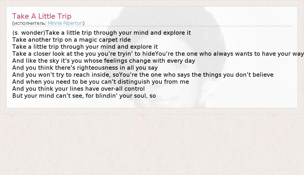 А как ты думаешь, о чем песня "Take A Little Trip" ?