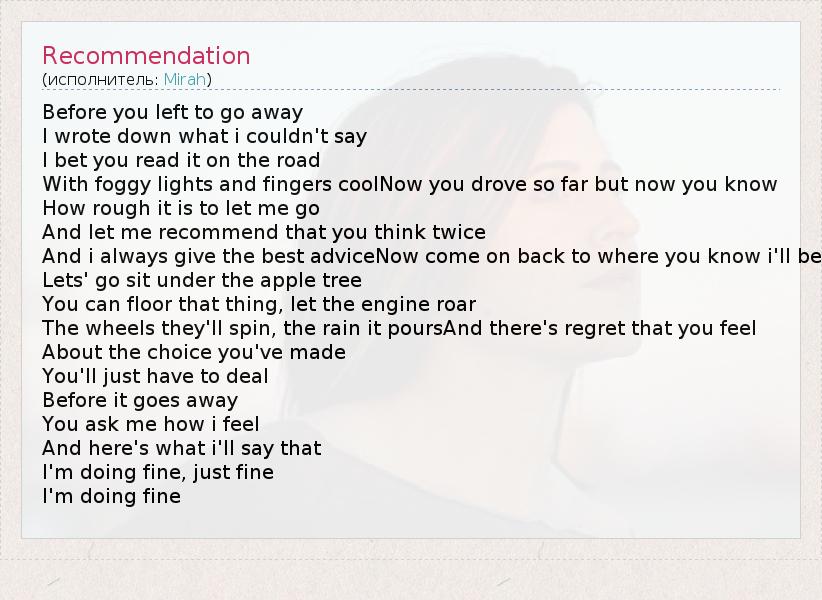 The wheels they'll spin, the rain it poursAnd there's regret that you feel