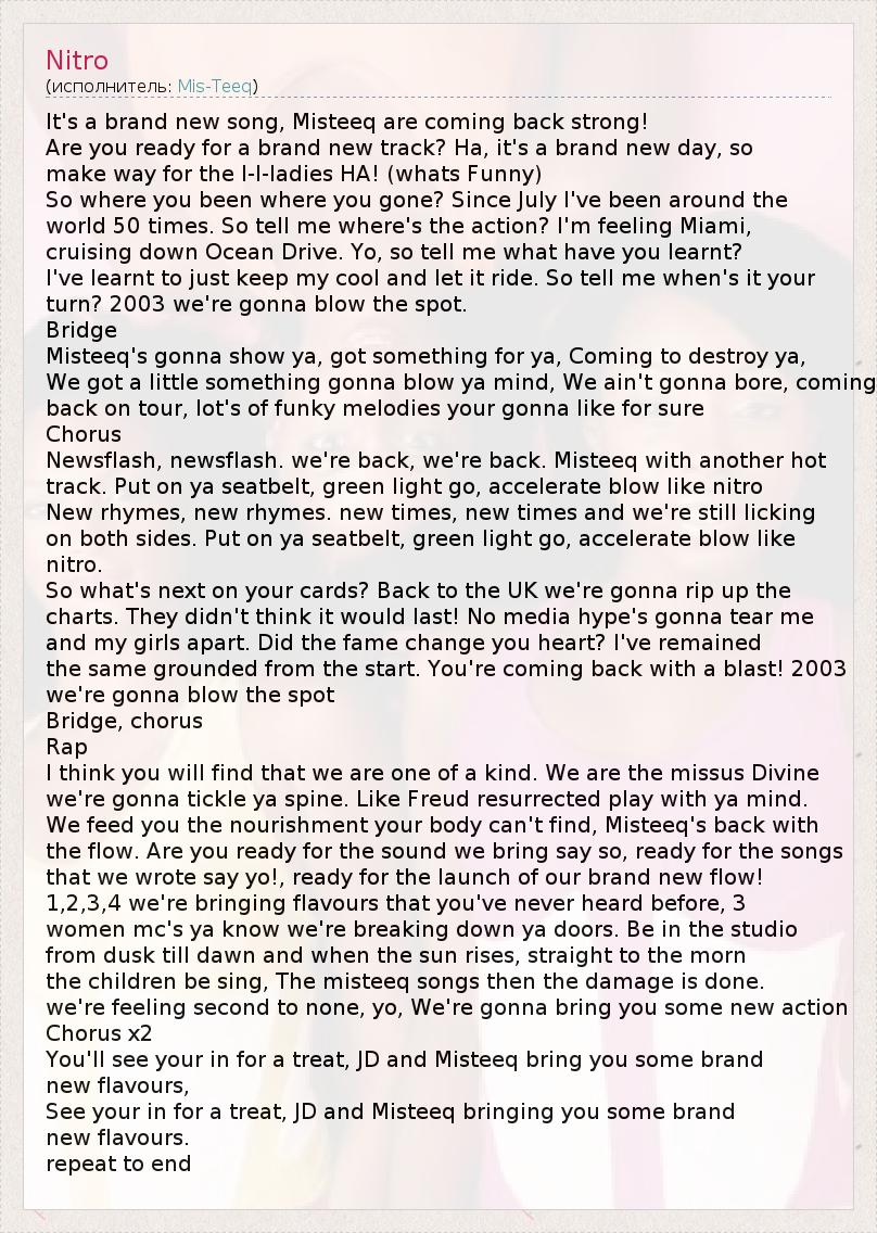 А как ты думаешь, о чем песня "Nitro" ?