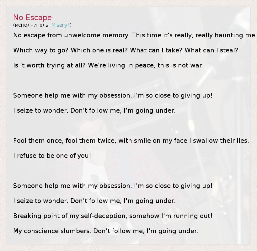 Это интересно:Post-metal/post-hardcore/experimentalГруппа Misery. Сама идея группы и материал существовали уже несколько лет, но состав начал формироваться только весной 2011 года. За это время выпустили одну дэмо запись и ЕР альбом. Сейчас идет работа над новым материалом и выпуском сингла. Играли на одной сцене с Dead harts (UK), The... продолжение