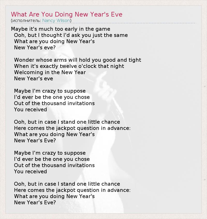 А как ты думаешь, о чем песня "What Are You Doing New Year's Eve" ?