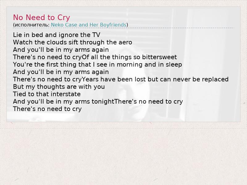 А как ты думаешь, о чем песня "No Need to Cry" ?