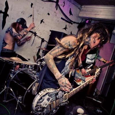 Это интересно: Британское трио, с прелестными девами на басу и гитаре и не менее прелестным барабанщиком, поют в два вокала, образовались судя по фейсбуку еще в 2011 году, первая концертная демо запись была записана в 2013 году, в последствии в том же году они записывают сплит семерку с «Choose Your Poison» и мини кассету «Screams From Our Slumbering Depths» с чем собственно они и едут с вышеозначенными CYP в совместный тур покорять мир. Вначале 2014 года они издают новый релиз под названием «The Absence Of Darkness Has No End»Играют ярую смесь мелодий в духе анархопанка со злобой грайндкора.