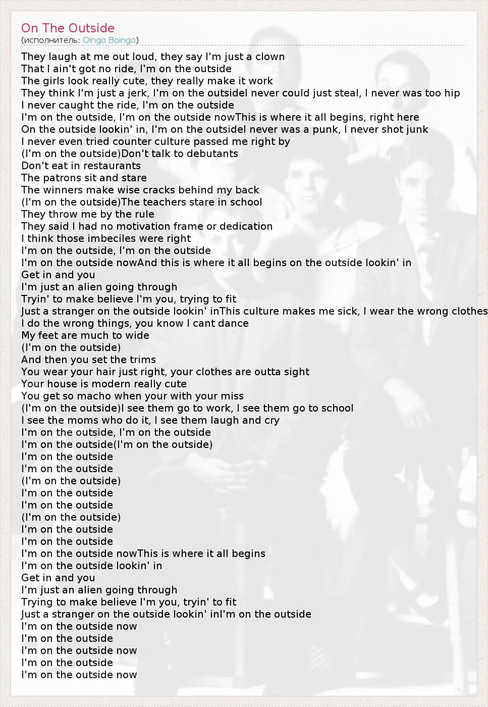 I'm on the outside, I'm on the outside