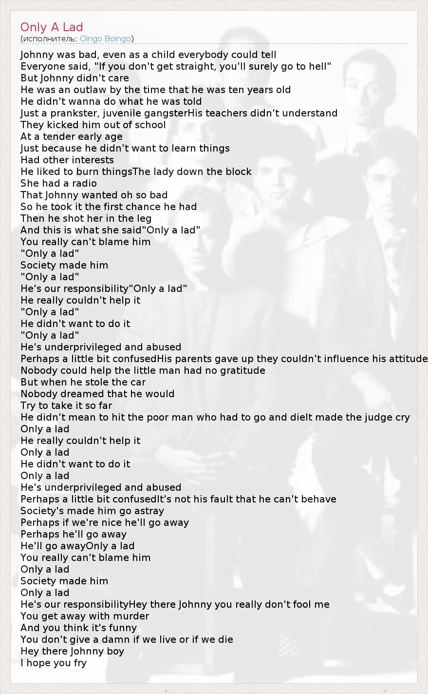 А как ты думаешь, о чем песня "Only A Lad" ?