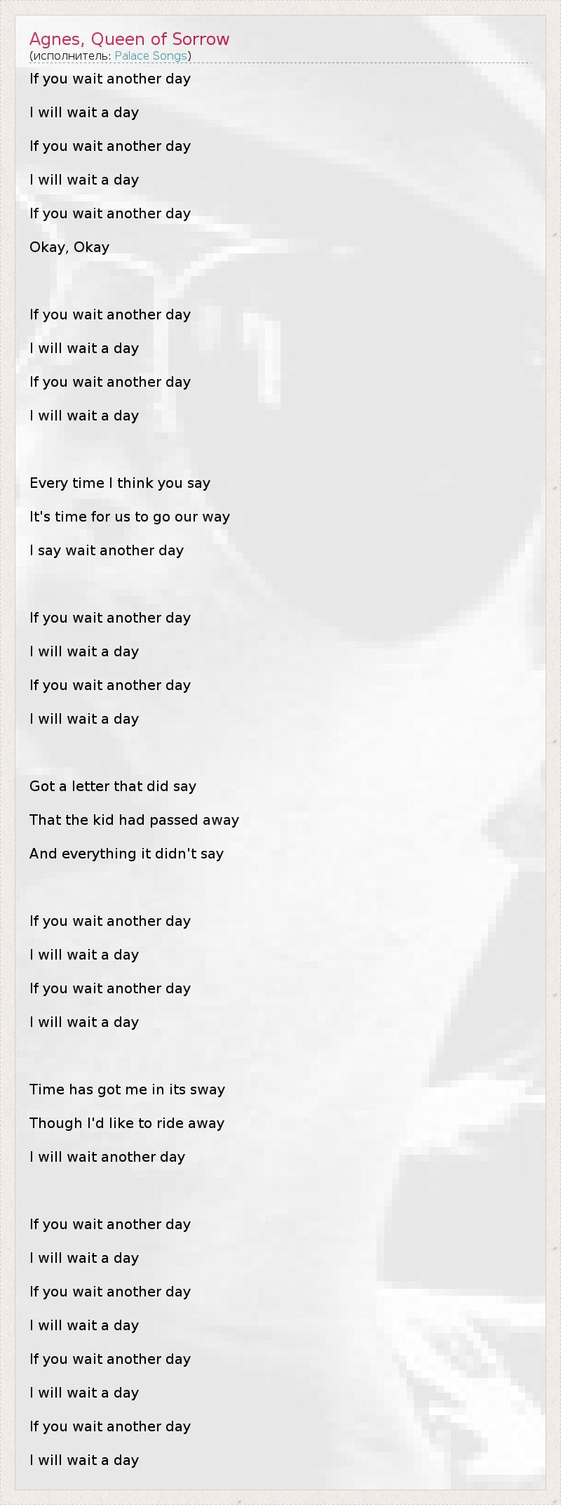 А как ты думаешь, о чем песня "Agnes, Queen of Sorrow" ?
