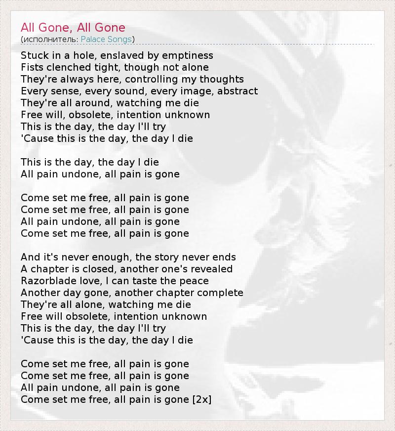 А как ты думаешь, о чем песня "All Gone, All Gone" ?