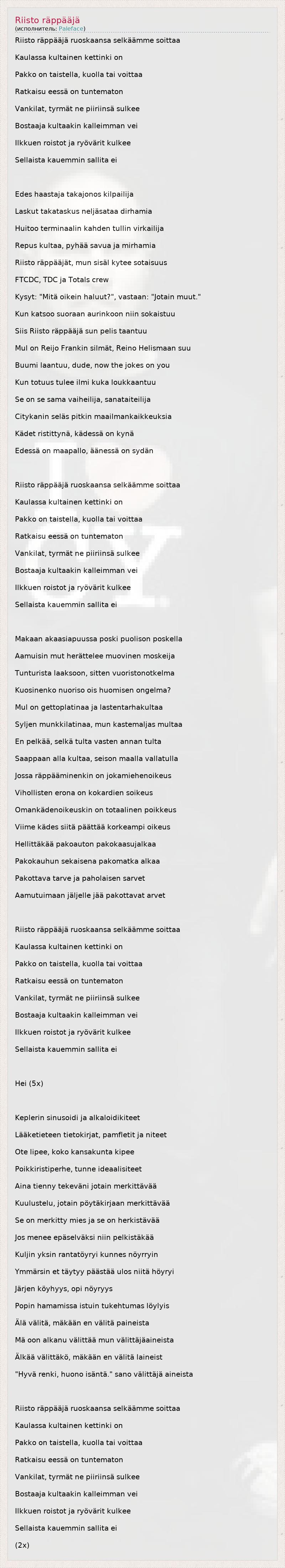 А как ты думаешь, о чем песня "Riisto räppääjä" ?