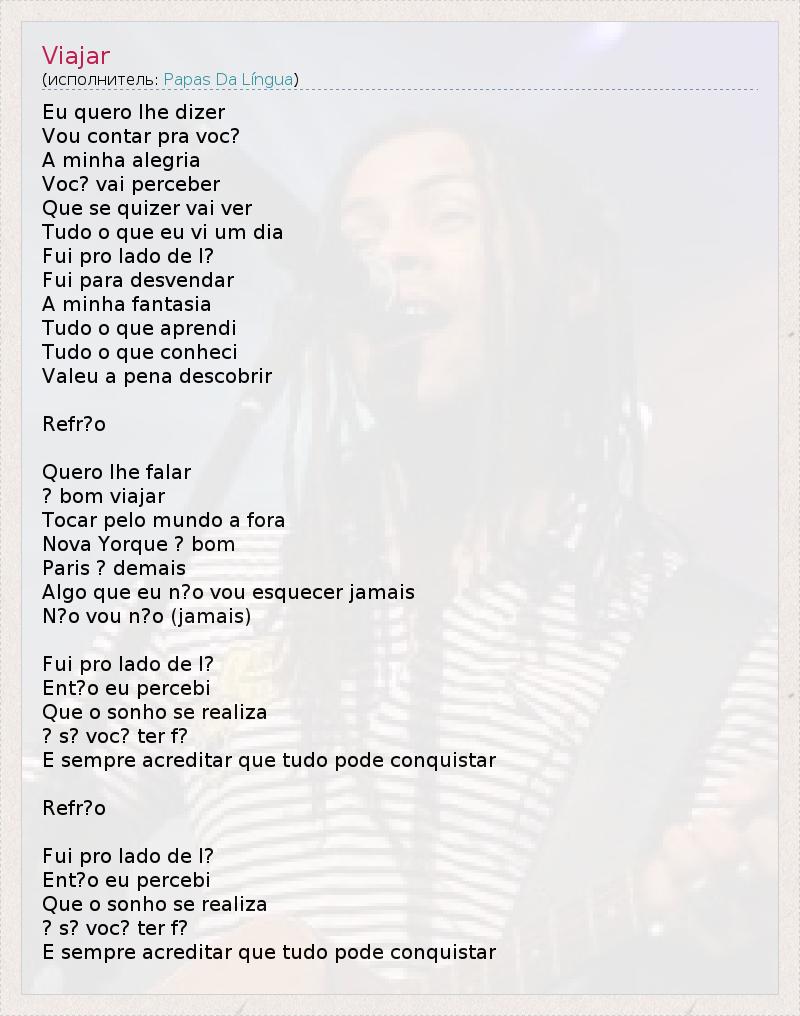Eu quero lhe dizer Vou contar pra voc? A minha alegria Voc? vai perceber Que se quizer vai ver Tudo o que eu vi um dia Fui pro lado de l? Fui para desvendar A minha fantasia Tudo o que aprendi Tudo o que conheci Valeu a pena descobrir Refr?o Quero lhe falar ? bom viajar Tocar pelo mundo a fora Nova Yorque ? bom Paris ? demais Algo que eu n?o vou esquecer jamais N?o vou n?o (jamais) Fui pro lado de l? Ent?o eu percebi Que o sonho se realiza ? s? voc? ter f? E sempre acreditar que tudo pode conquistar Refr?o Fui pro lado de l? Ent?o eu percebi Que o sonho se realiza ? s? voc? ter f? E sempre acreditar que tudo pode conquistar
