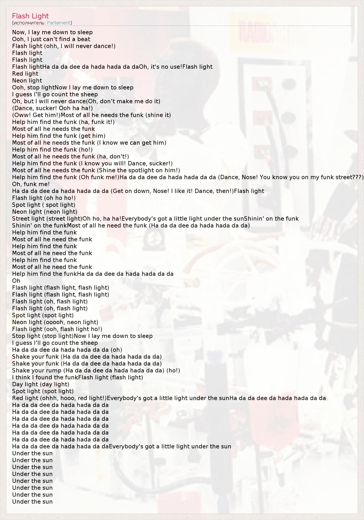 Red light (ohhh, hooo, red light!)Everybody's got a little light under the sunHa da da dee da hada hada da da