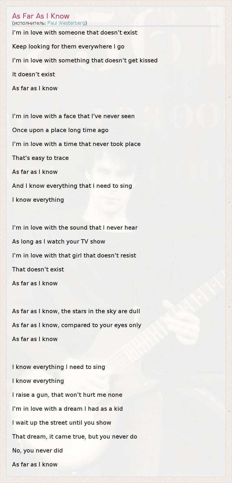 А как ты думаешь, о чем песня "As Far As I Know" ?