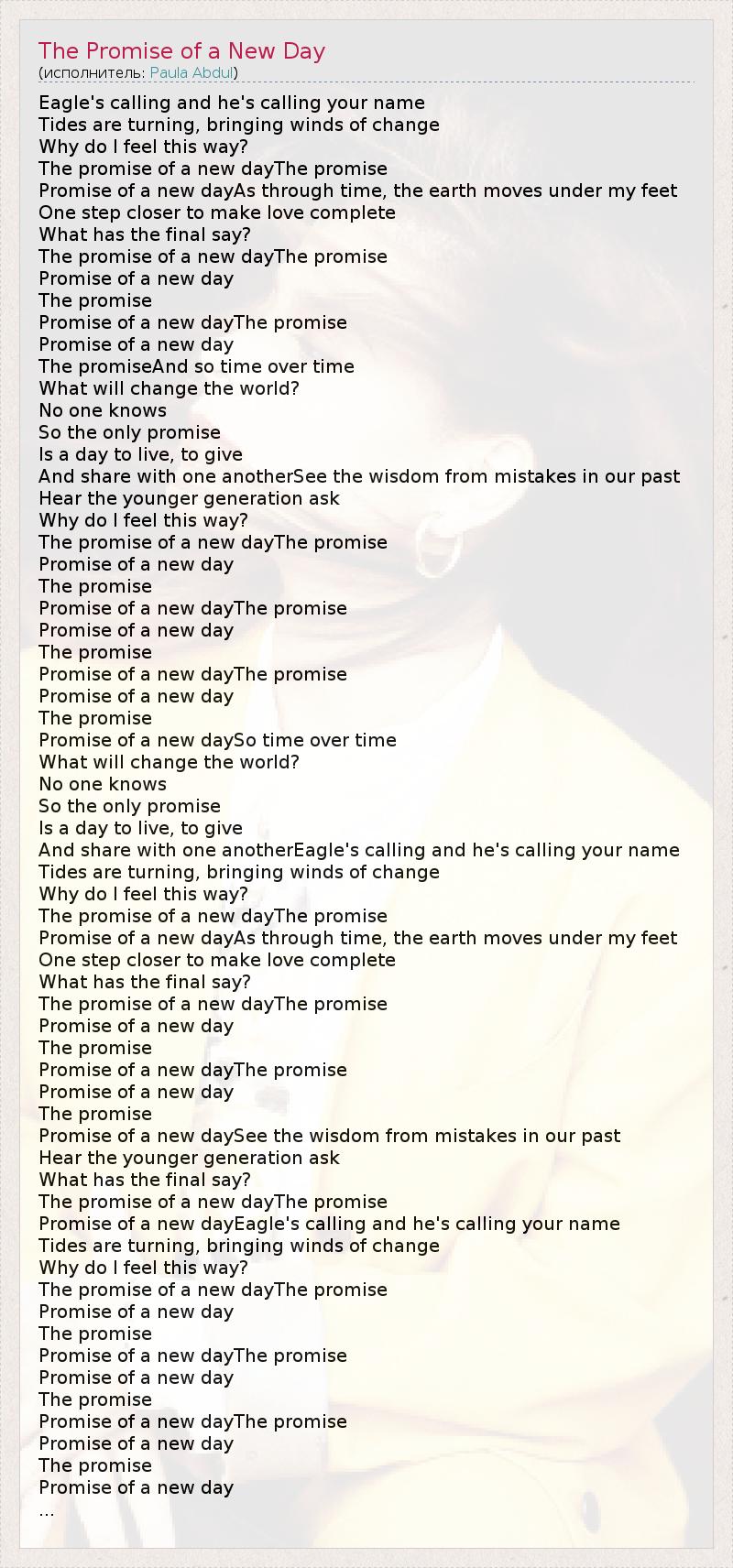 А как ты думаешь, о чем песня "The Promise of a New Day" ?
