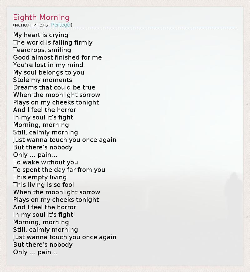 А как ты думаешь, о чем песня "Eighth Morning" ?