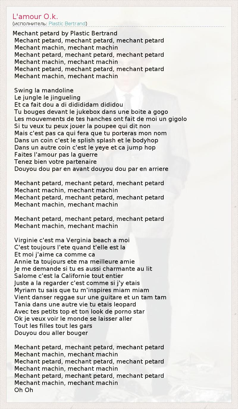 А как ты думаешь, о чем песня "L'amour O.k." ?