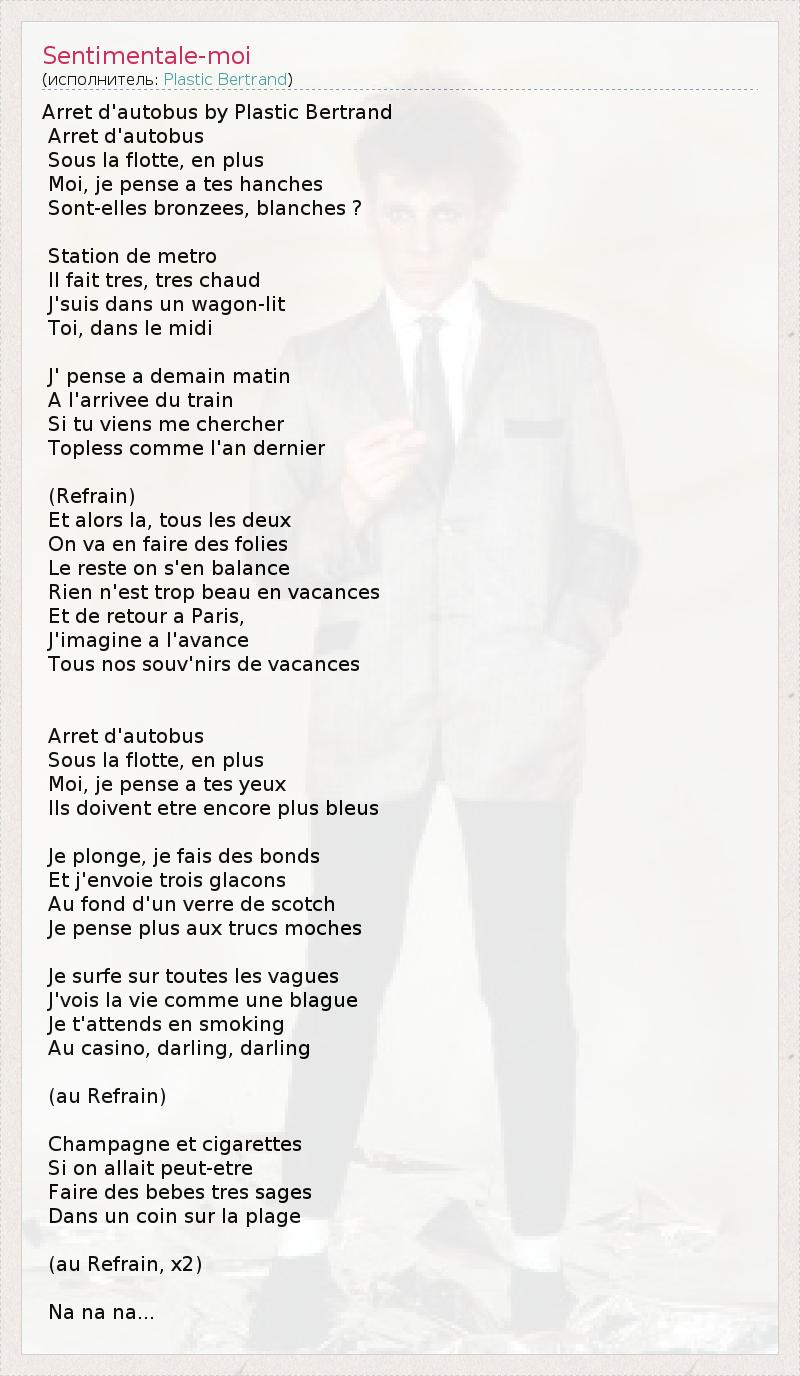 А как ты думаешь, о чем песня "Sentimentale-moi" ?
