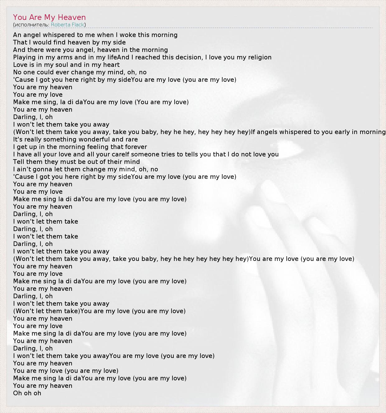 А как ты думаешь, о чем песня "You Are My Heaven" ?