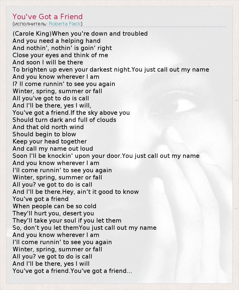 А как ты думаешь, о чем песня "You've Got a Friend" ?