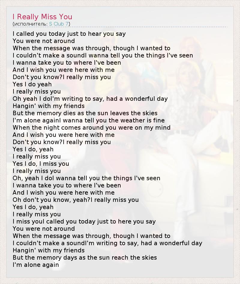 А как ты думаешь, о чем песня "I Really Miss You" ?