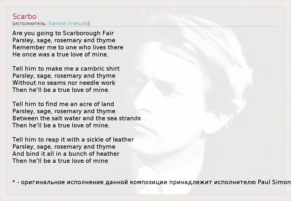 * - оригинальное исполнение данной композиции принадлежит исполнителю Paul Simon