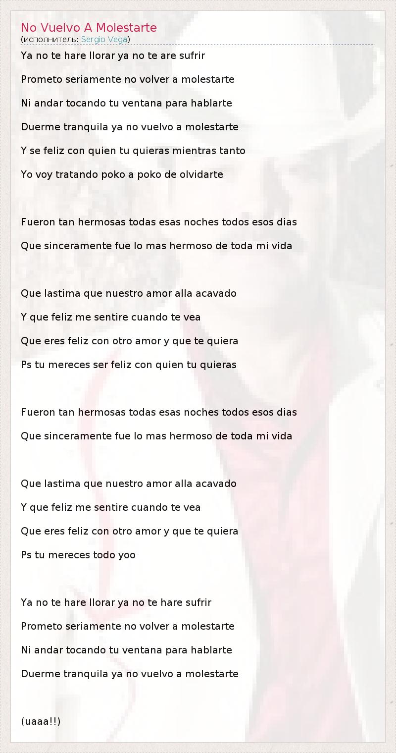 А как ты думаешь, о чем песня "No Vuelvo A Molestarte" ?