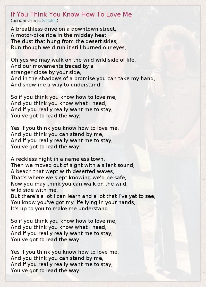 А как ты думаешь, о чем песня "If You Think You Know How To Love Me" ?