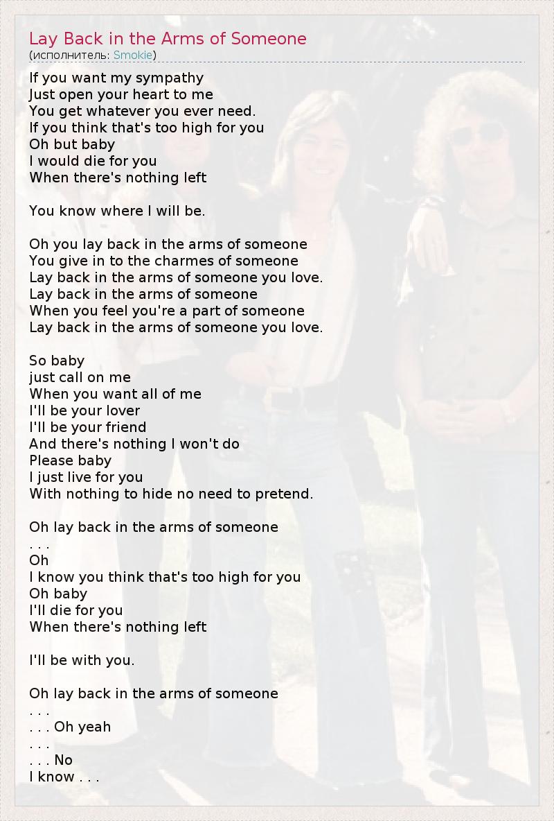 А как ты думаешь, о чем песня "Lay Back in the Arms of Someone" ?