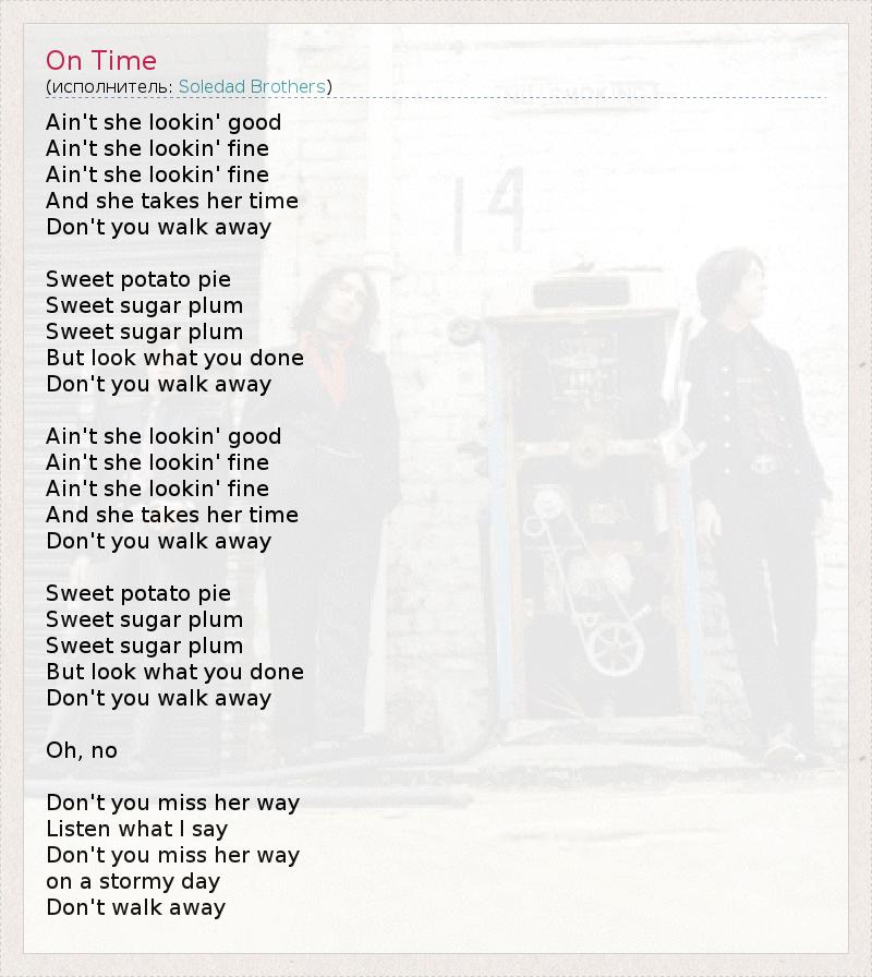 Это интересно:Soledad Brothers - американское блюзовое трио из Майами, штат Огайо, образованное в 1998 году. Состав: Benjamin Swank на ударных, Johnny Walker - вокал и гитара, Oliver Henry (участник группы The Greenhornes, который подключился к Soledad Brothers незадолго до выпуска их второго альбома) - гитара и саксофон. Название группы взято из истории о трех преступниках,заключенных в тюрьме Soledad Prison, бывших членах Организации "Черная Пантера".Дискография:... продолжение