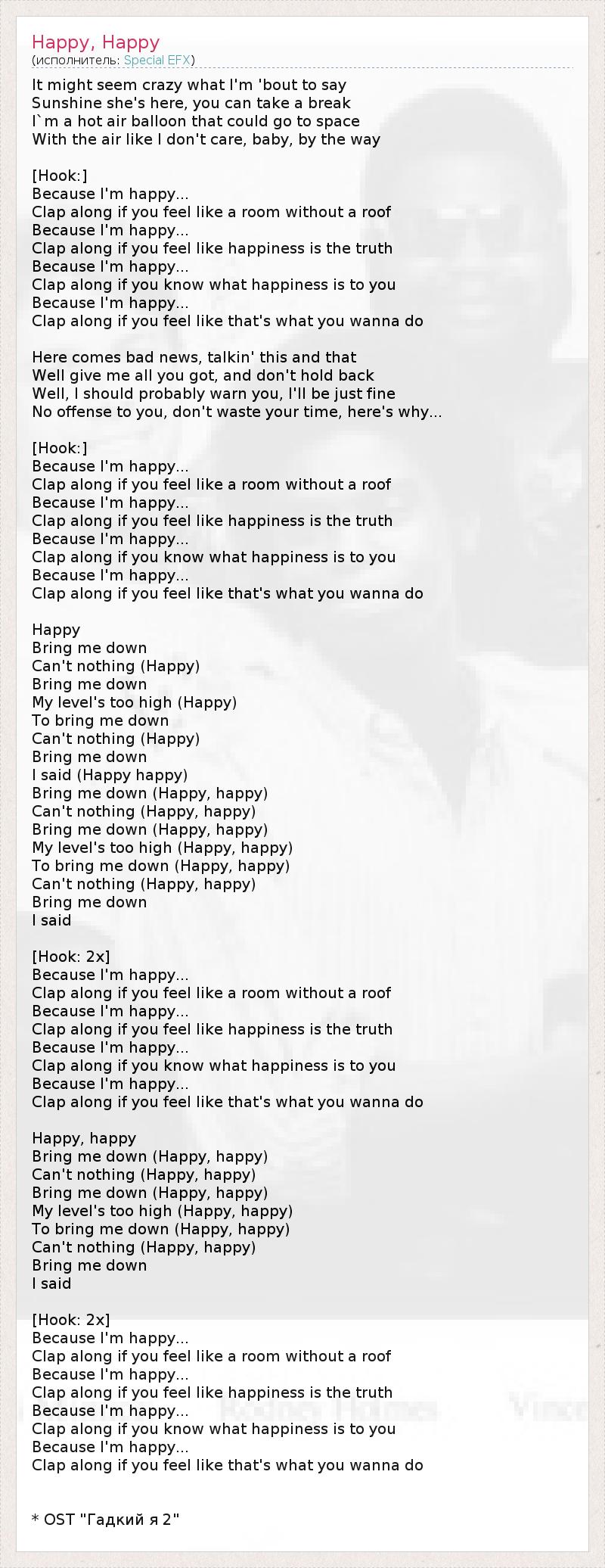 А как ты думаешь, о чем песня "Happy, Happy" ?