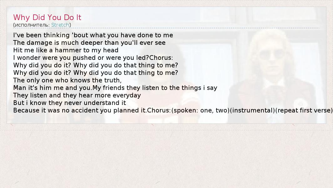 А как ты думаешь, о чем песня "Why Did You Do It" ?