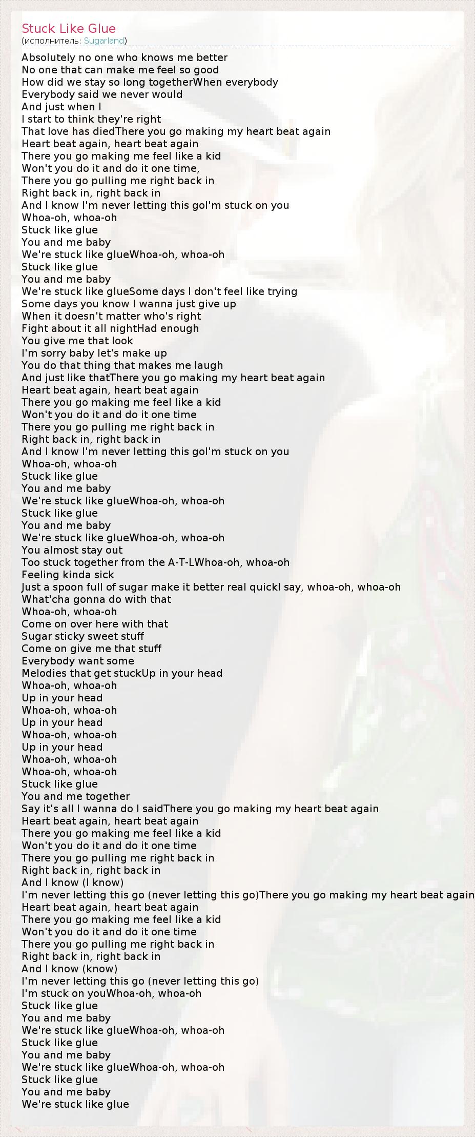 А как ты думаешь, о чем песня "Stuck Like Glue" ?