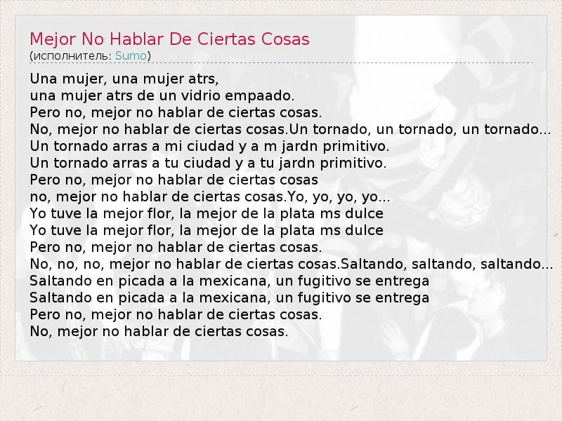 А как ты думаешь, о чем песня "Mejor No Hablar De Ciertas Cosas" ?