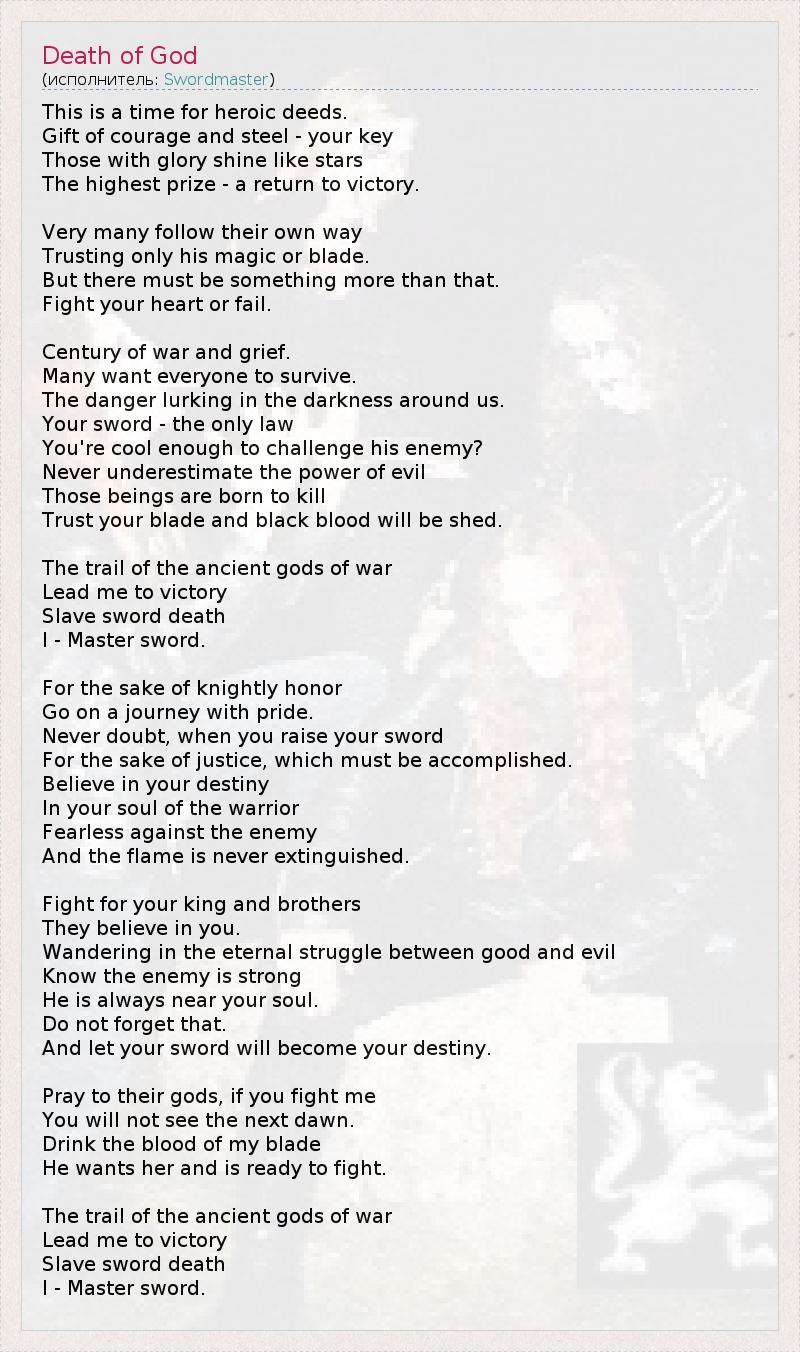 Это интересно:Swordmaster — блэк/трэш/дэт-метал-группа основанная Андреасом Бергом (Vinnie Whiplasher) и Эмилем Нодтвейдтом (Naughty Nightmare) в 1993 году.В 1993 году, после первой же репетиции участники группы сделали запись нескольких треков и не смотря на то, что лейблы не спешили сотрудничать с ними, продолжали записывать материал. Группа окончательно сформировалась только тогда, когда к ней присоединился басист Thunderbird.... продолжение