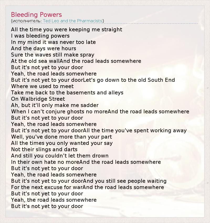 А как ты думаешь, о чем песня "Bleeding Powers" ?