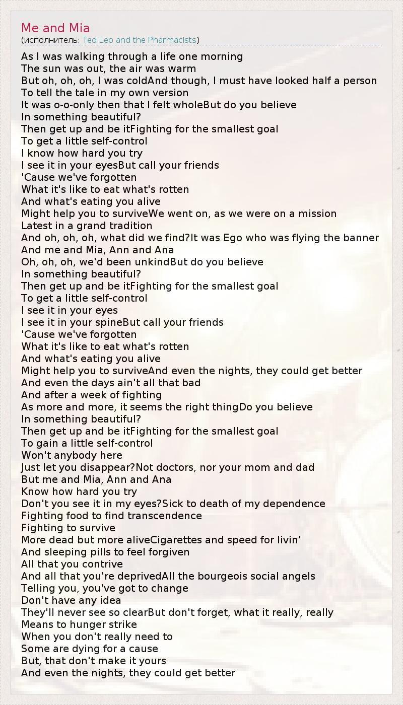 А как ты думаешь, о чем песня "Me and Mia" ?