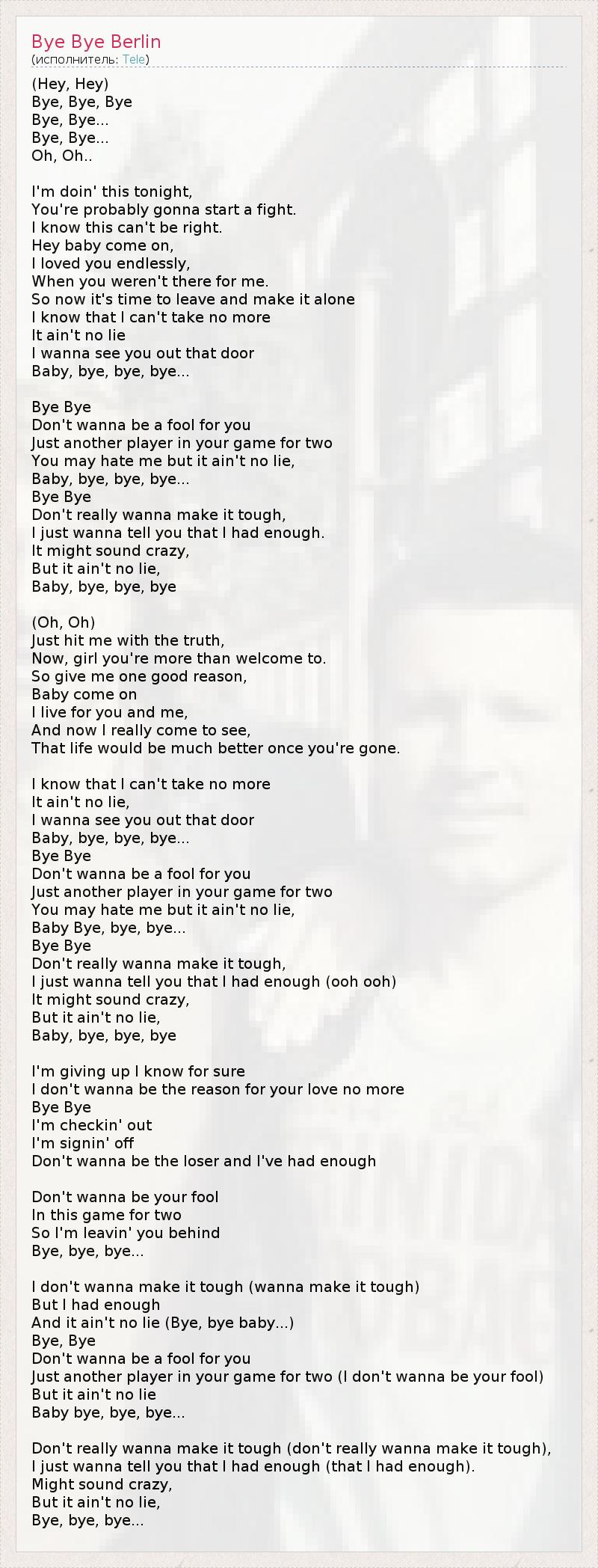 А как ты думаешь, о чем песня "Bye Bye Berlin" ?