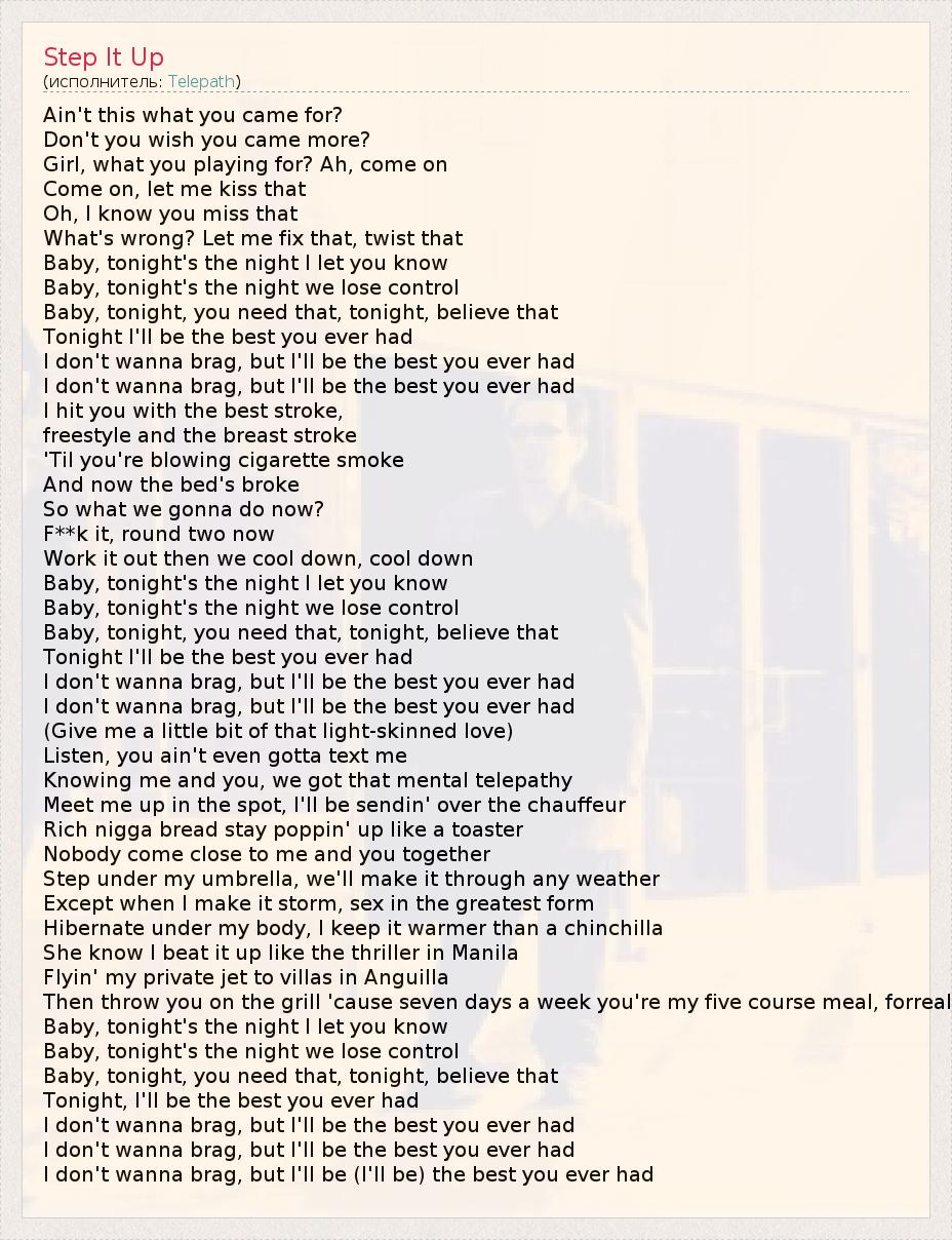 А как ты думаешь, о чем песня "Step It Up" ?
