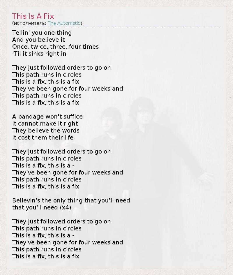 А как ты думаешь, о чем песня "This Is A Fix" ?