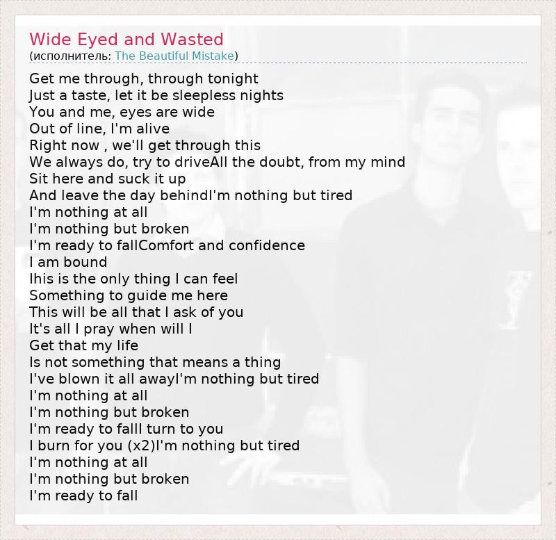 А как ты думаешь, о чем песня "Wide Eyed and Wasted" ?