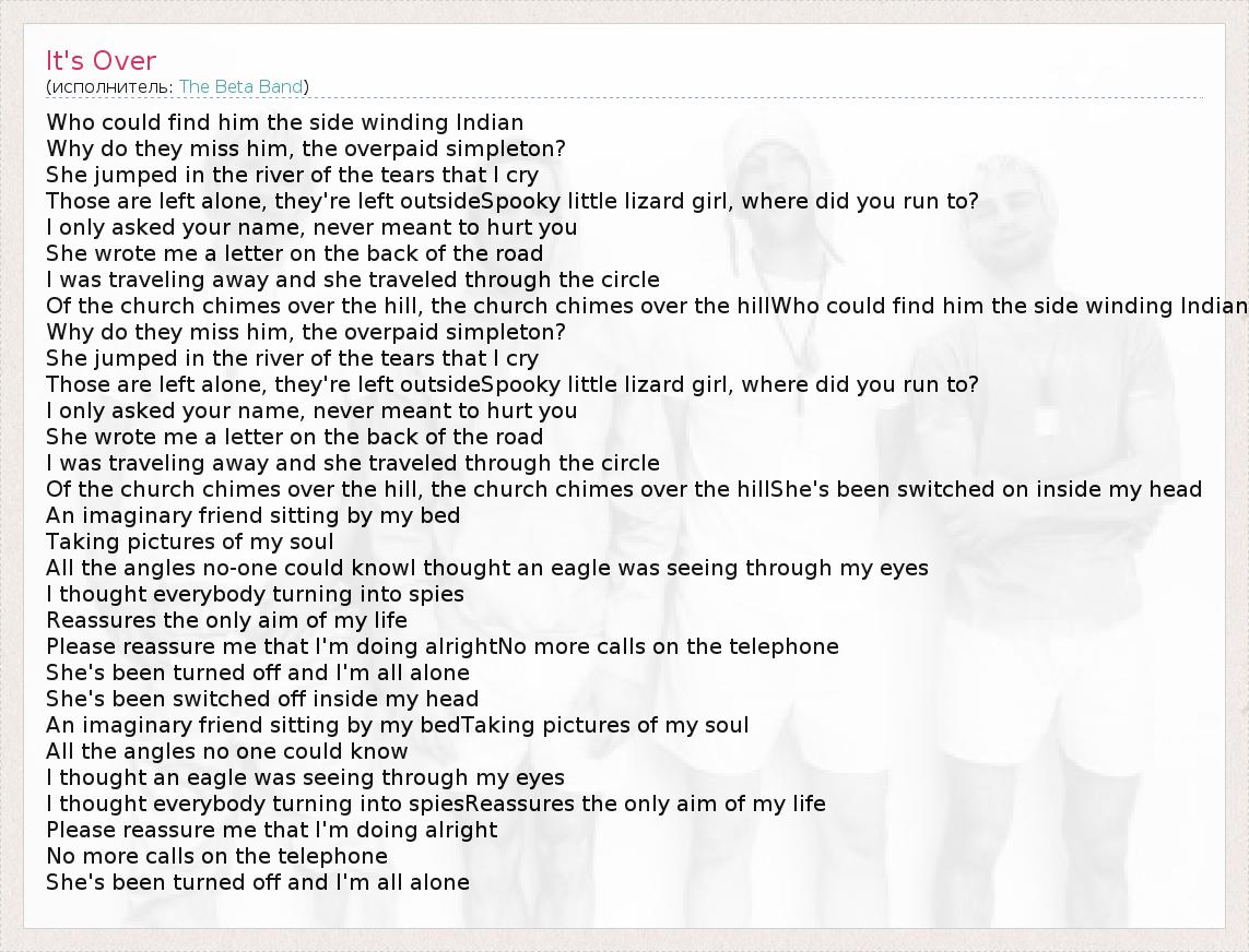 Of the church chimes over the hill, the church chimes over the hillShe's been switched on inside my head