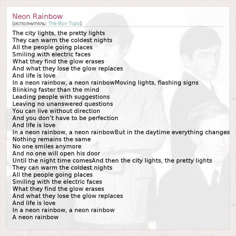 А как ты думаешь, о чем песня "Neon Rainbow" ?